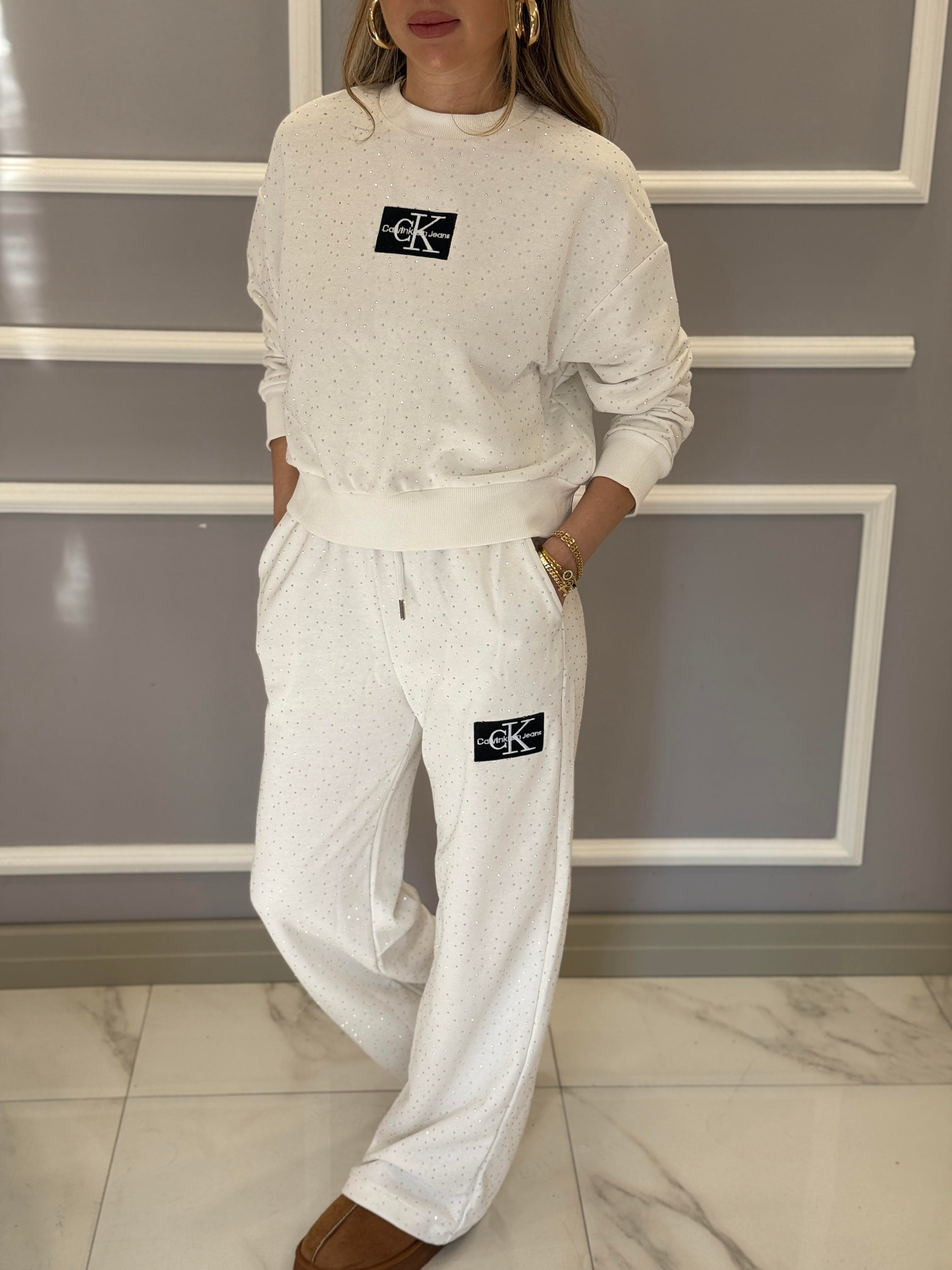 Cnk Beyaz Takım Serpme Taşlı Nakışlı