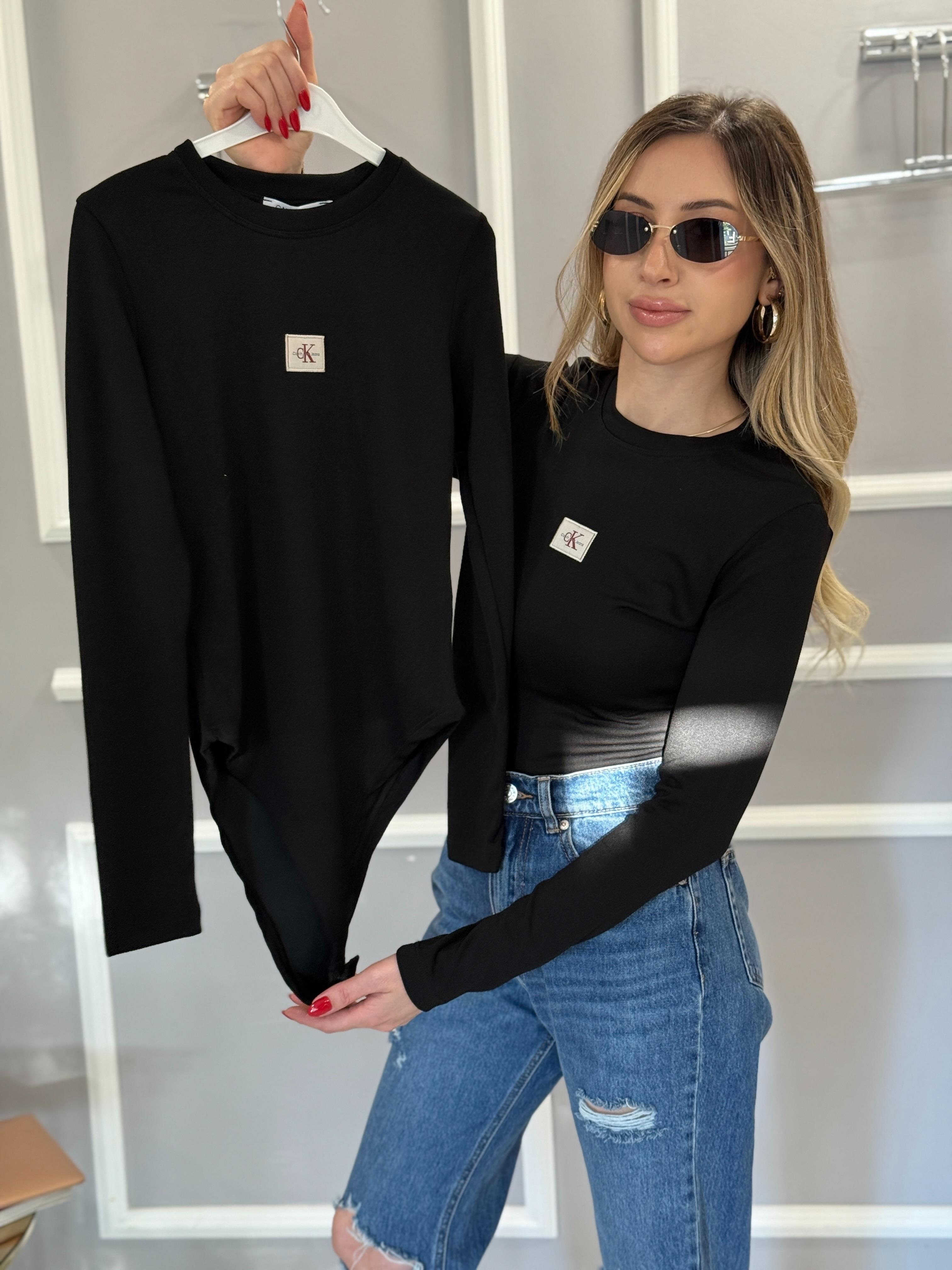 Cnk Body Suit Likralı Nakış Yazılı Siyah