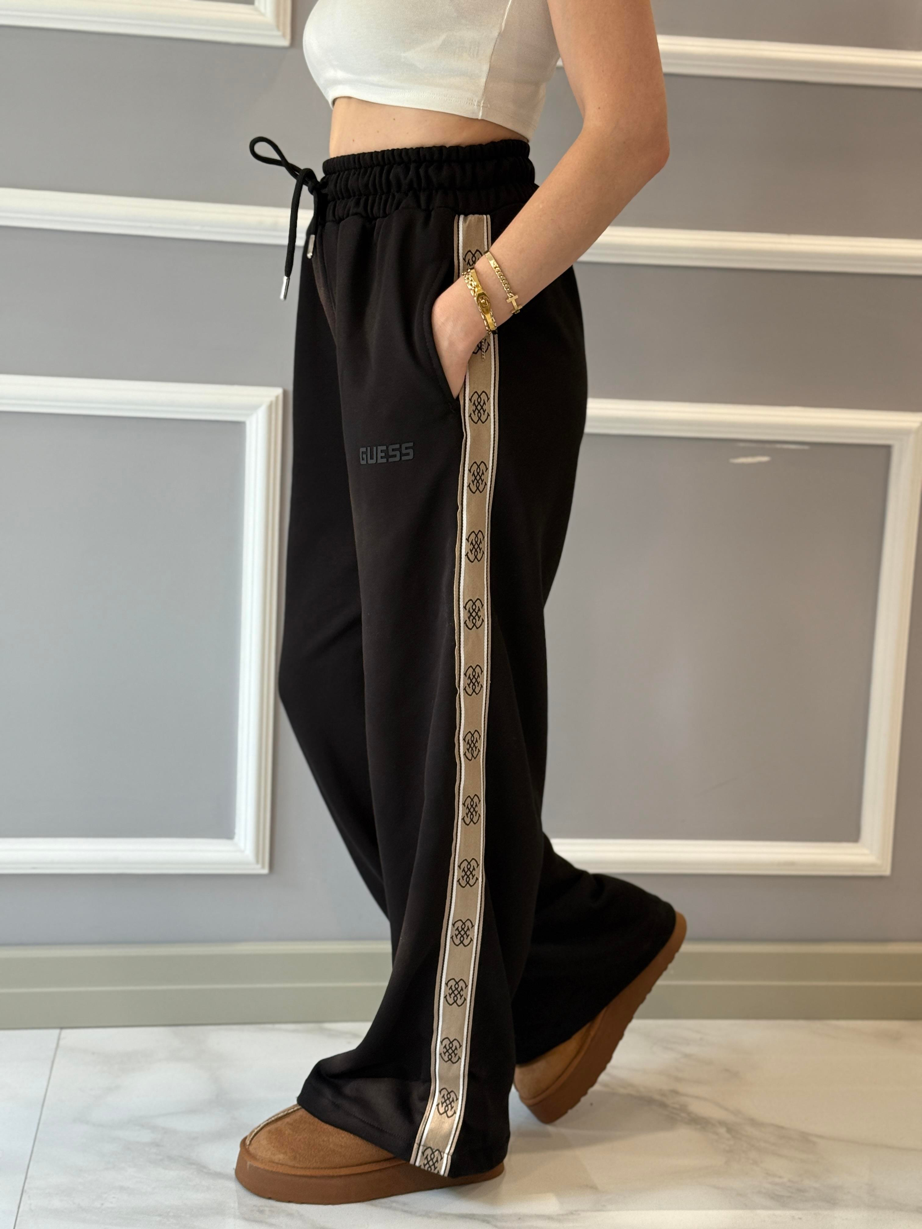 GU Plazzo Pantolon Eşofman Altı Yan Detaylı Siyah