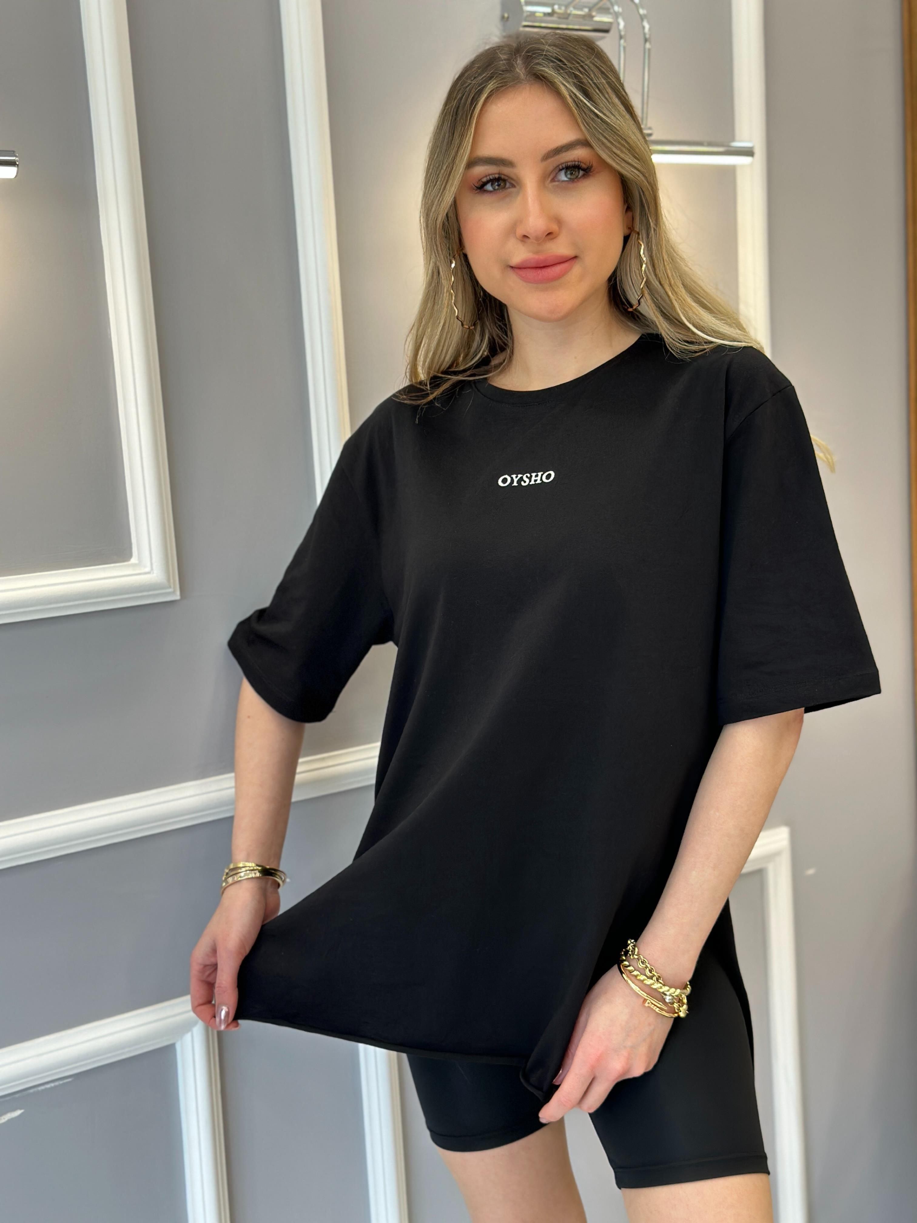 Oys T-shirt Oversize Yandan Yırtmaçlı Siyah
